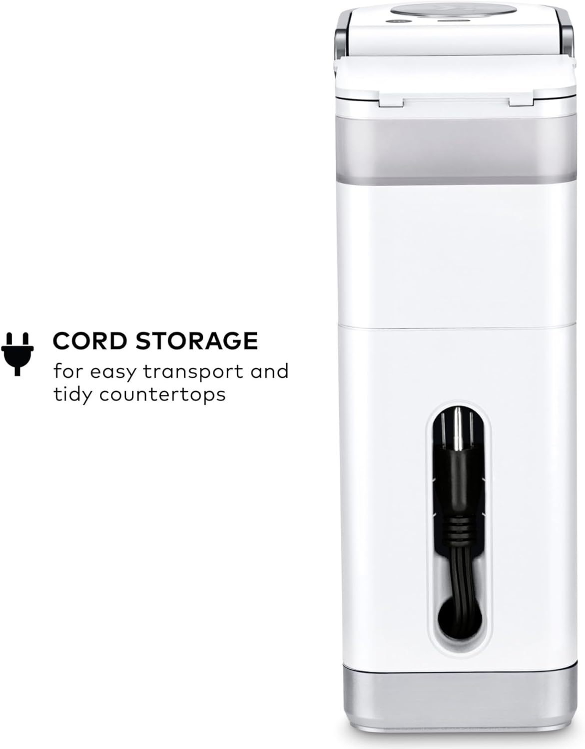 - REMOVABLE ONE CUP RESERVOIR: Just add fresh water for each brew. Removable reservoir makes for easy cleaning and filling.
