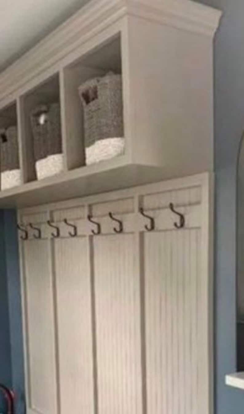 Included: 4 cubbies up top, 4 cubbies in the bottom, 8 hooks