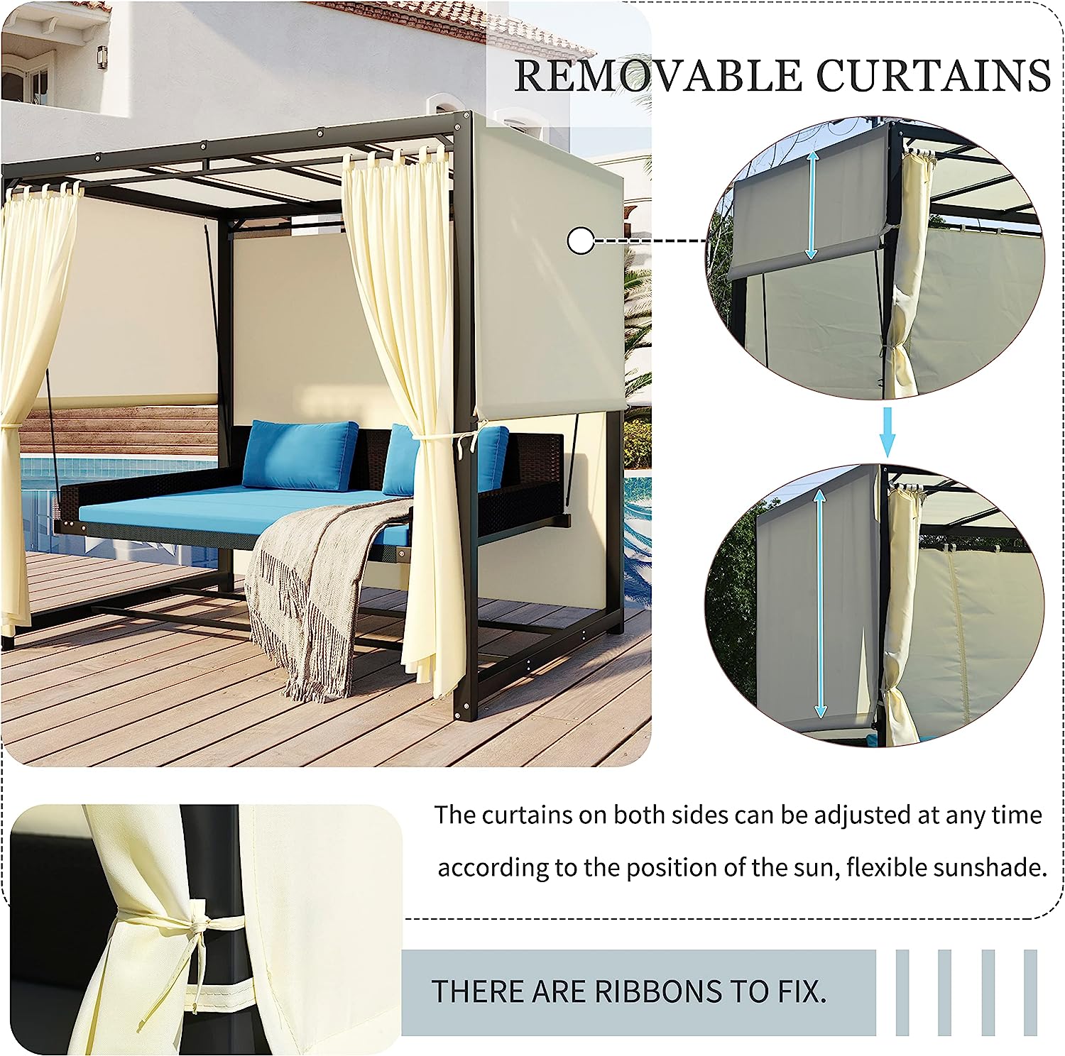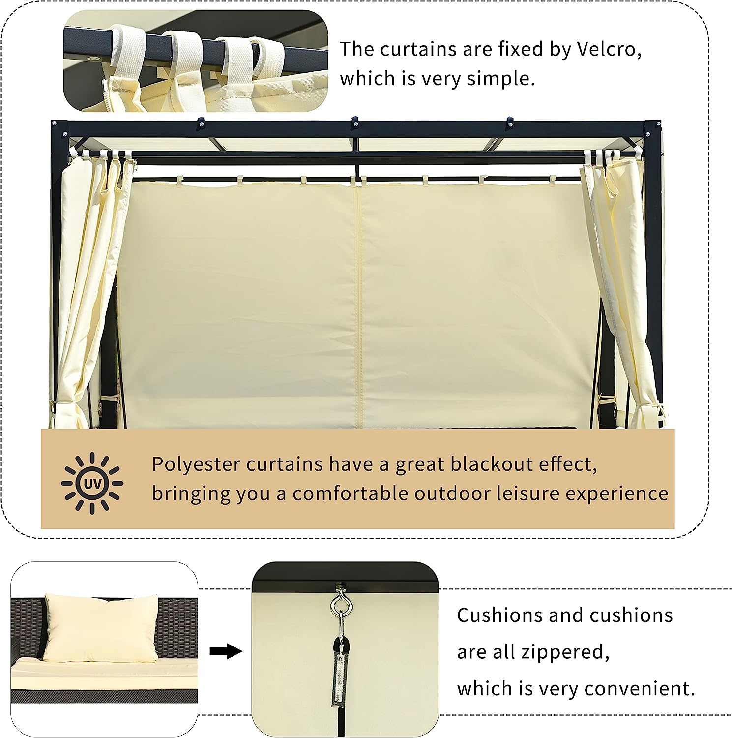 - ��ENOUGH SITTING SPACE�� This wicker garden patio furniture set includes 1 x patio swing bed, 1 x Gazebo . It can support up to 750lbs, comfortably swings up to 3 people. Ensuring a smooth, gentle swing experience.