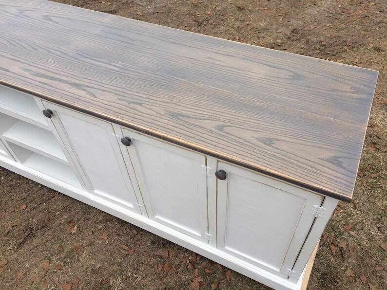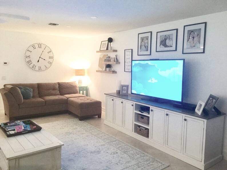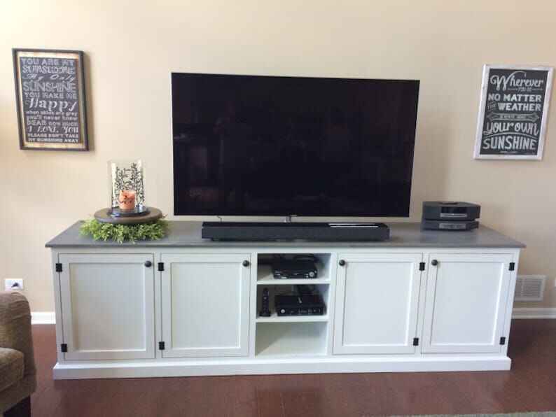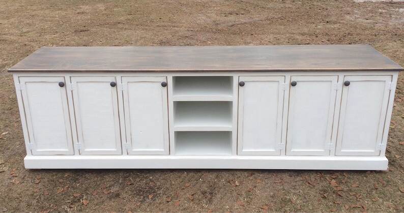 This entertainment center tv stand is the ultimate statement piece for a coastal cottage or shabby chic inspired home.