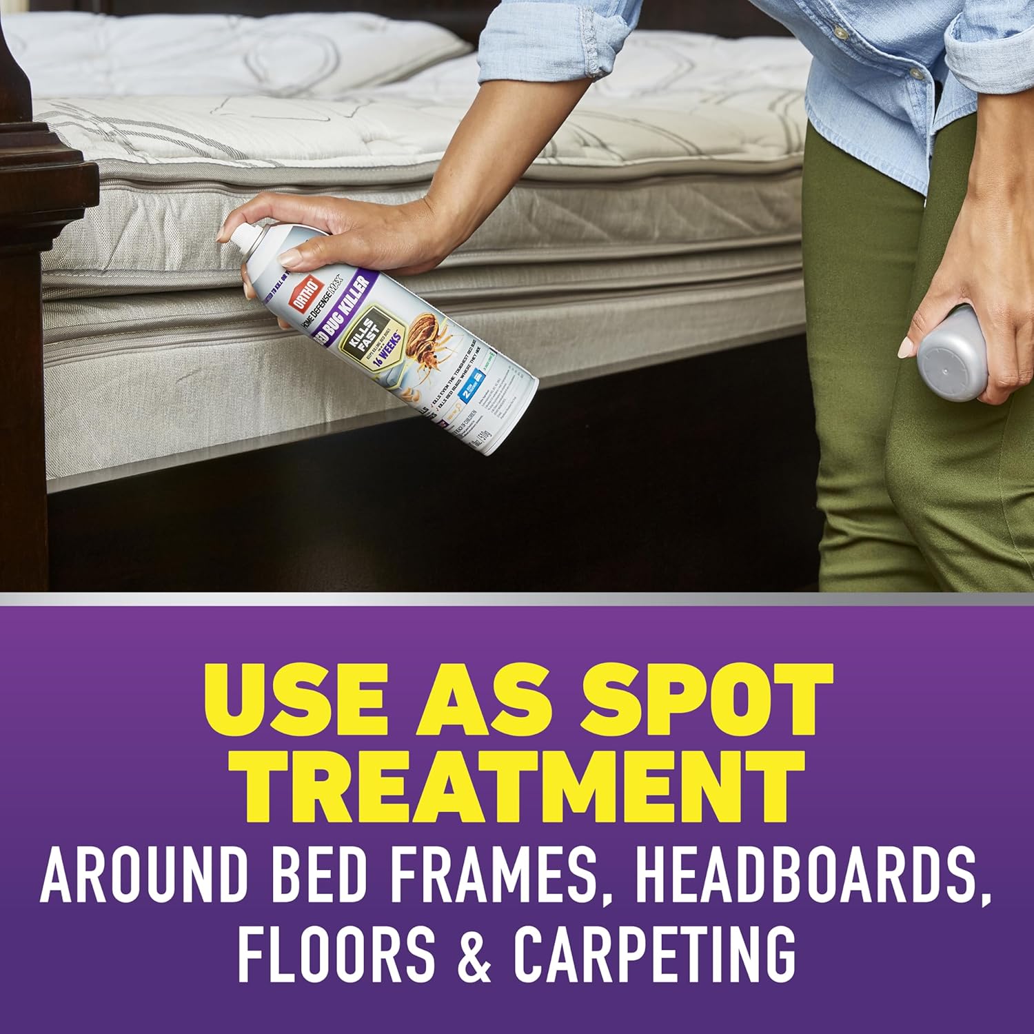 - Use spray as a spot treatment around bed frames, mattress seams/tufts/folds, and baseboards