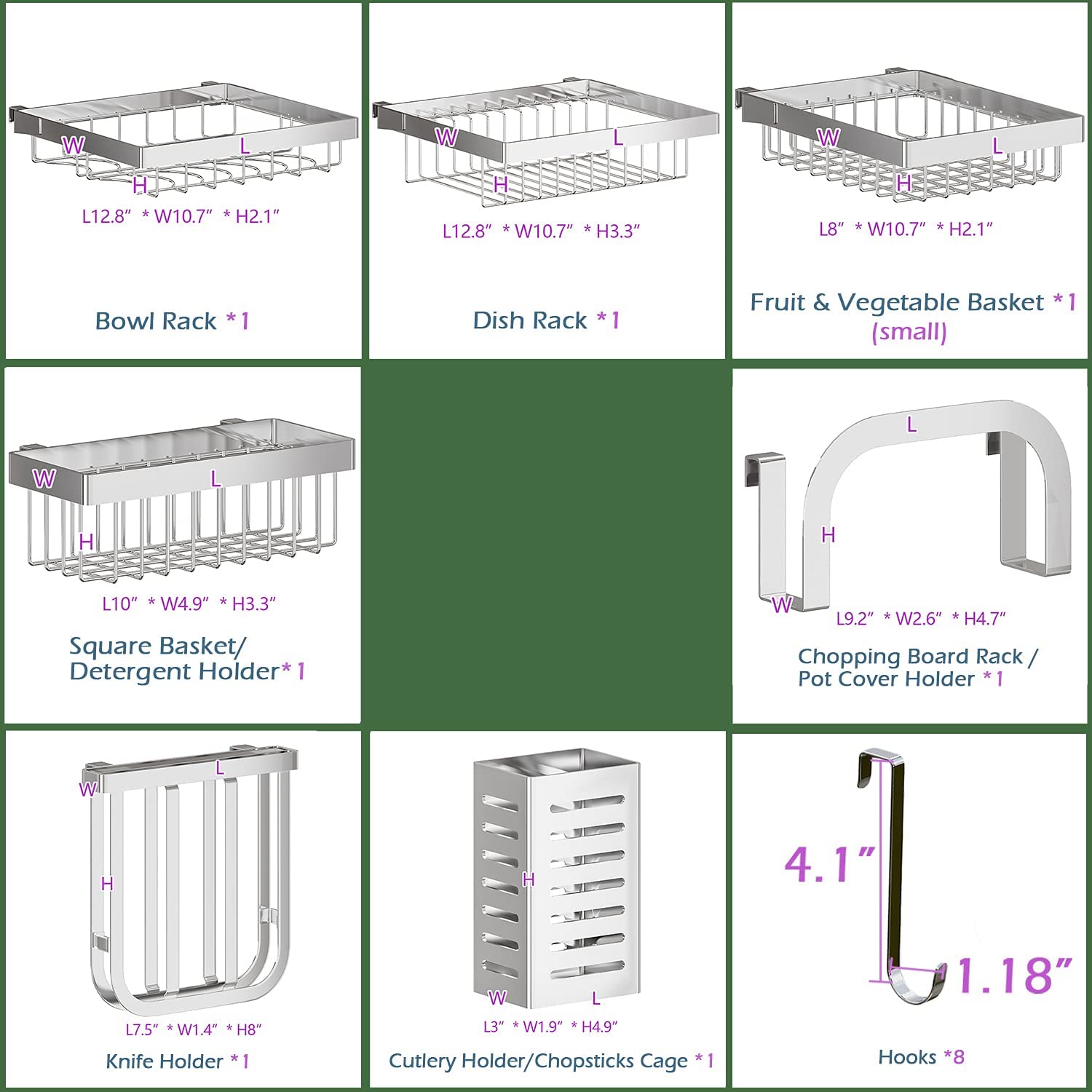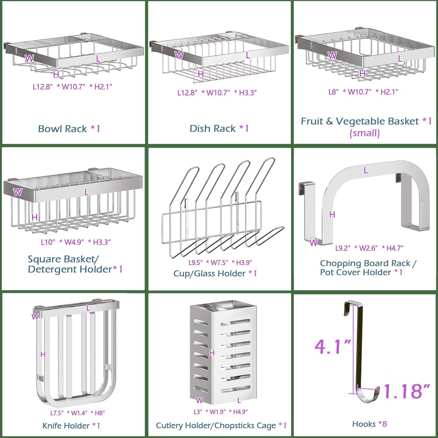 Over Sink(24"-40") Dish Drying Rack, Adjustable Cutlery Holders Drainer Shelf for Kitchen