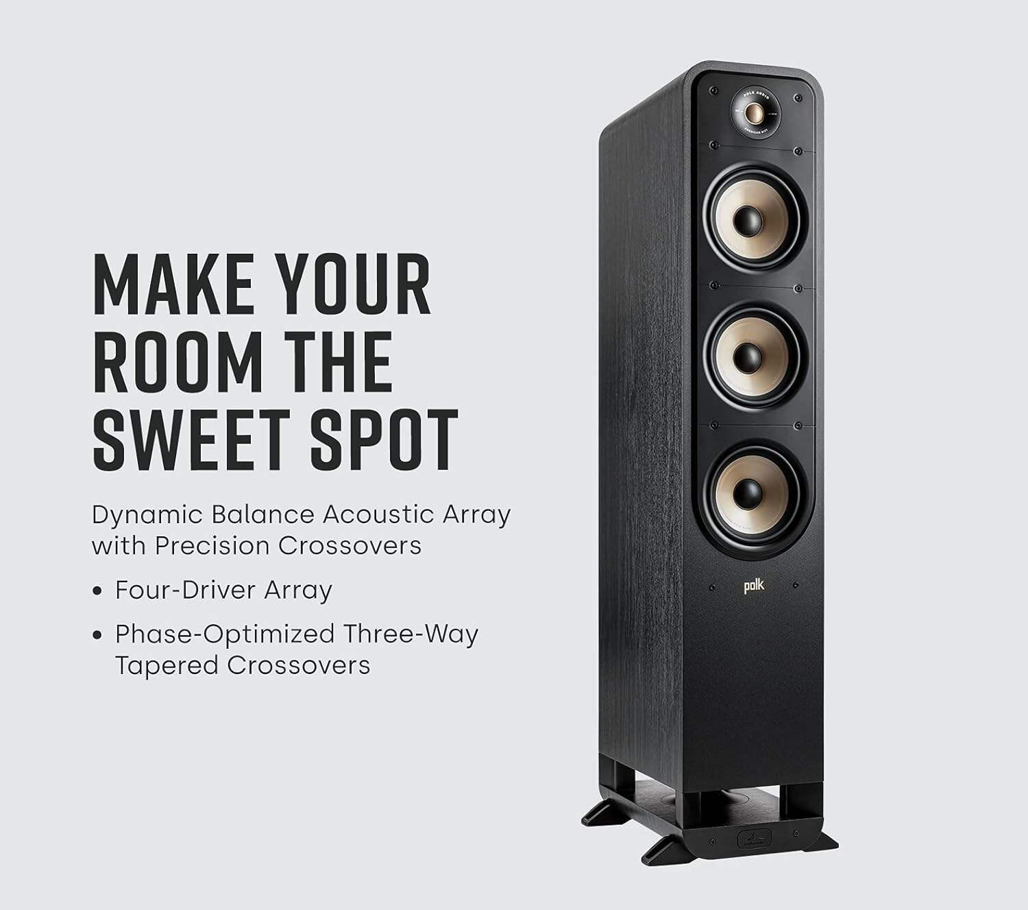 - NOT ONLY HEAR, BUT FEEL THE HEART-THUMPING BASS - Polk's Patented Power Port Technology delivers 3dB louder bass output than conventional ported speakers, minimizing turbulence & distortion so you do not miss any detail in your movies, music, and games