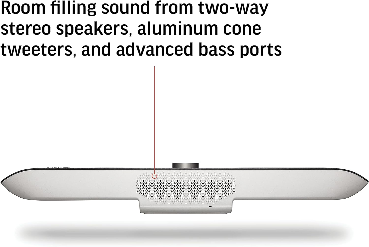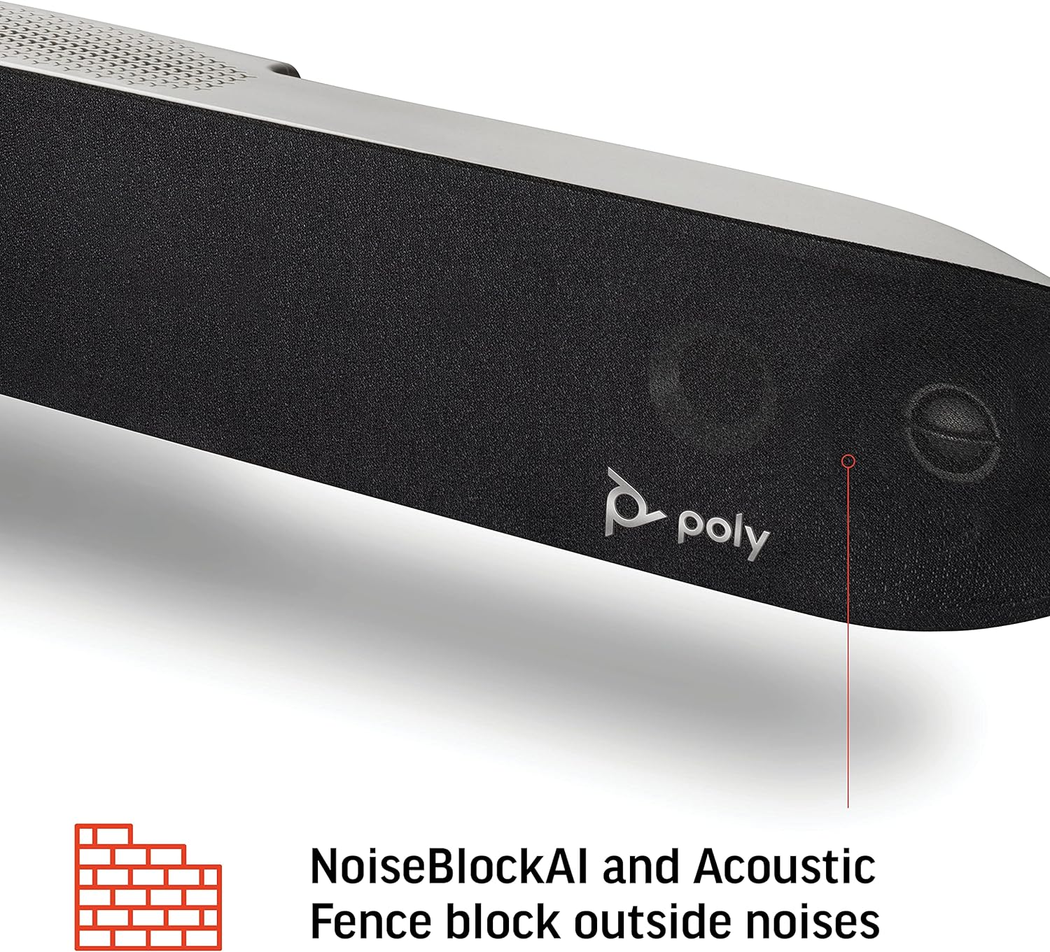 - Audio Quality: Boardroom-filling audio from two-way stereo speakers, aluminum cone tweeters, and advanced bass ports. Prevent distracting noises and side conversations from interrupting your meetings with NoiseBlockAI and Acoustic Fence technology