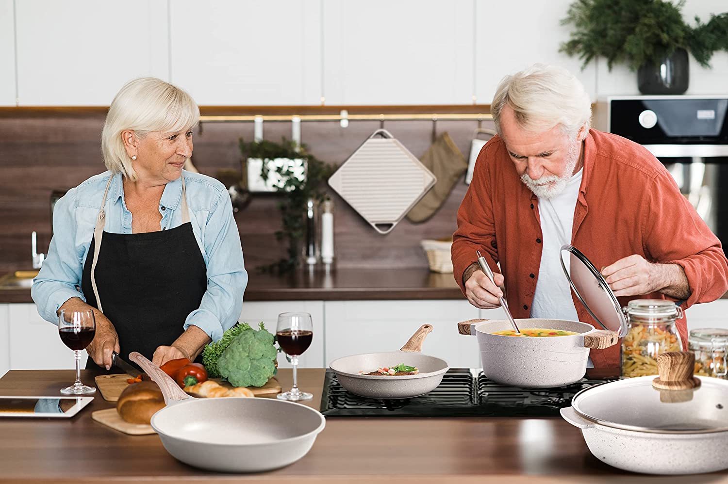 - Beautifully designed - Caannasweis kitchen cookware collection features granite coatings and wood-grain handles that incorporate natural elements to provide a quick solution to enhance kitchen decor.