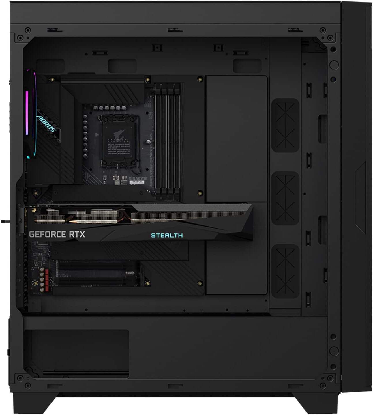 • AORUS C300 GLASS STEALTH: Full-Size 4mm tempered glass side panel, PSU Shroud Design, Detachable dust filter