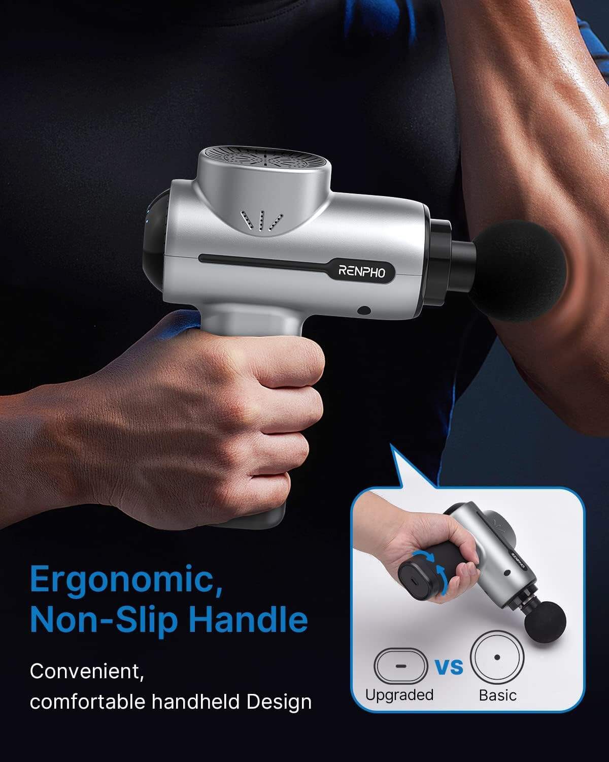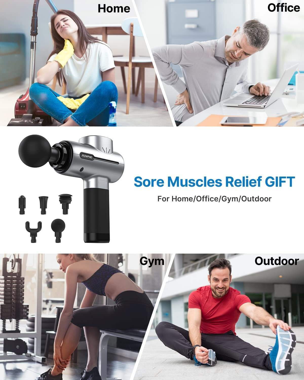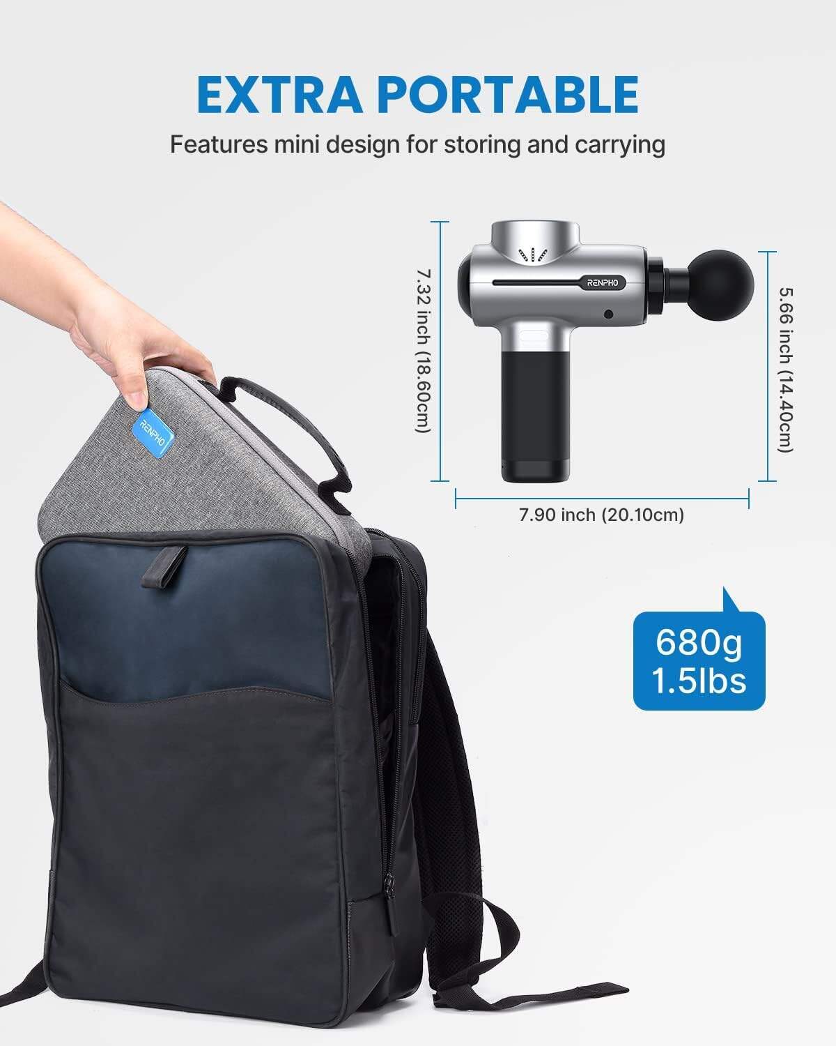 - Ultra-Portable & Silent Percussion Massager for Athletes: Weighted only 1.5lbs, this muscle massage gun deep tissue is ultra-compact and easy to grip; a super quiet brushless motor, as low as 45db, makes it ideal for home, office, or gym use