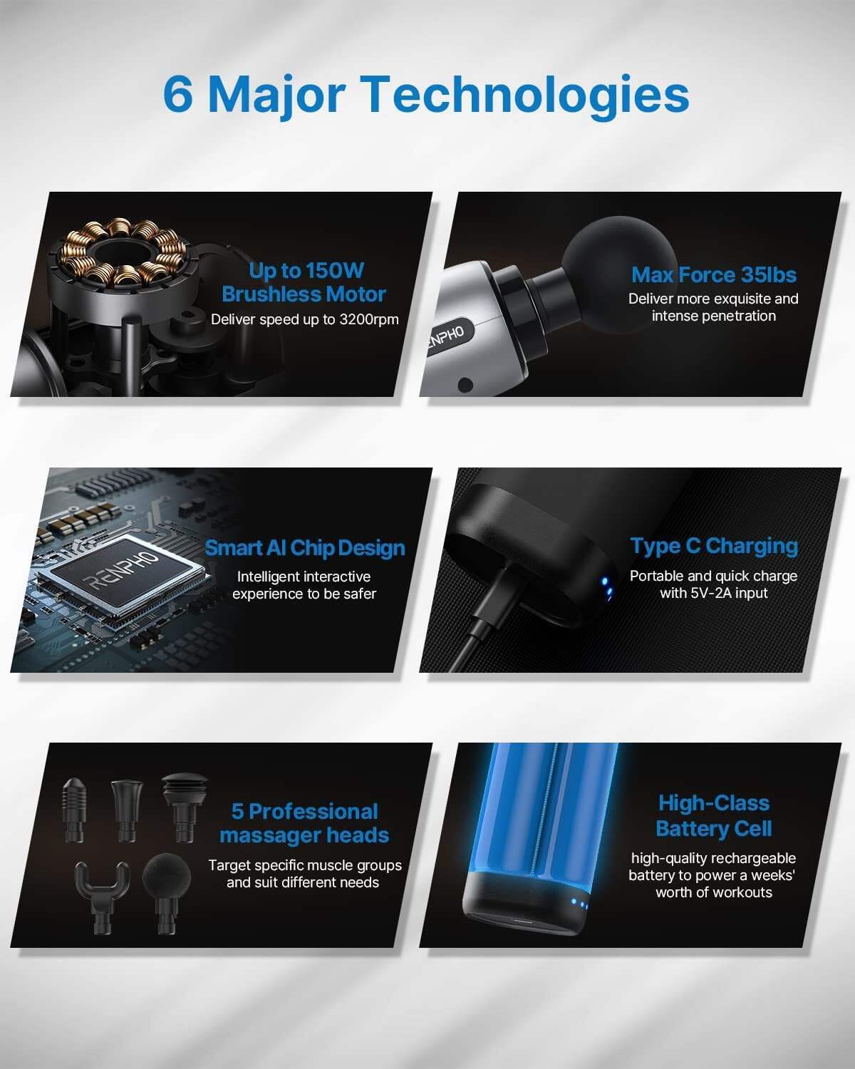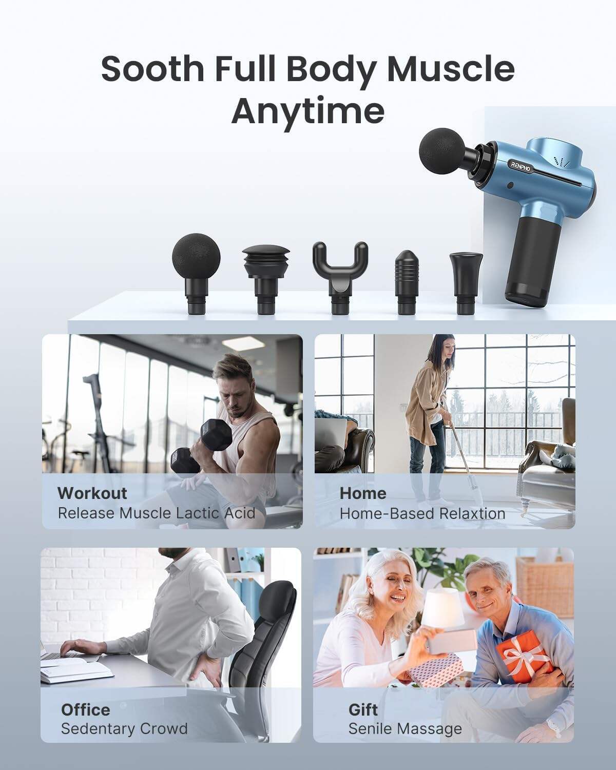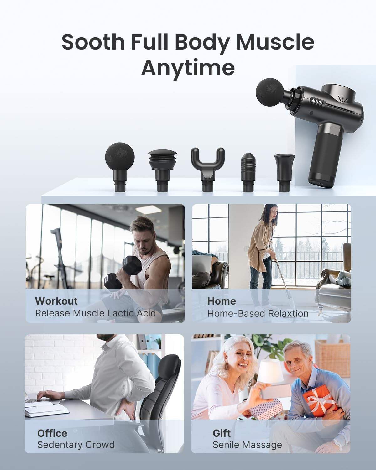 - Ultra-Portable & Silent Percussion Massager for Athletes: Weighted only 1.5lbs, this muscle massage gun deep tissue is ultra-compact and easy to grip; a super quiet brushless motor, as low as 45db, makes it ideal for home, office, or gym use