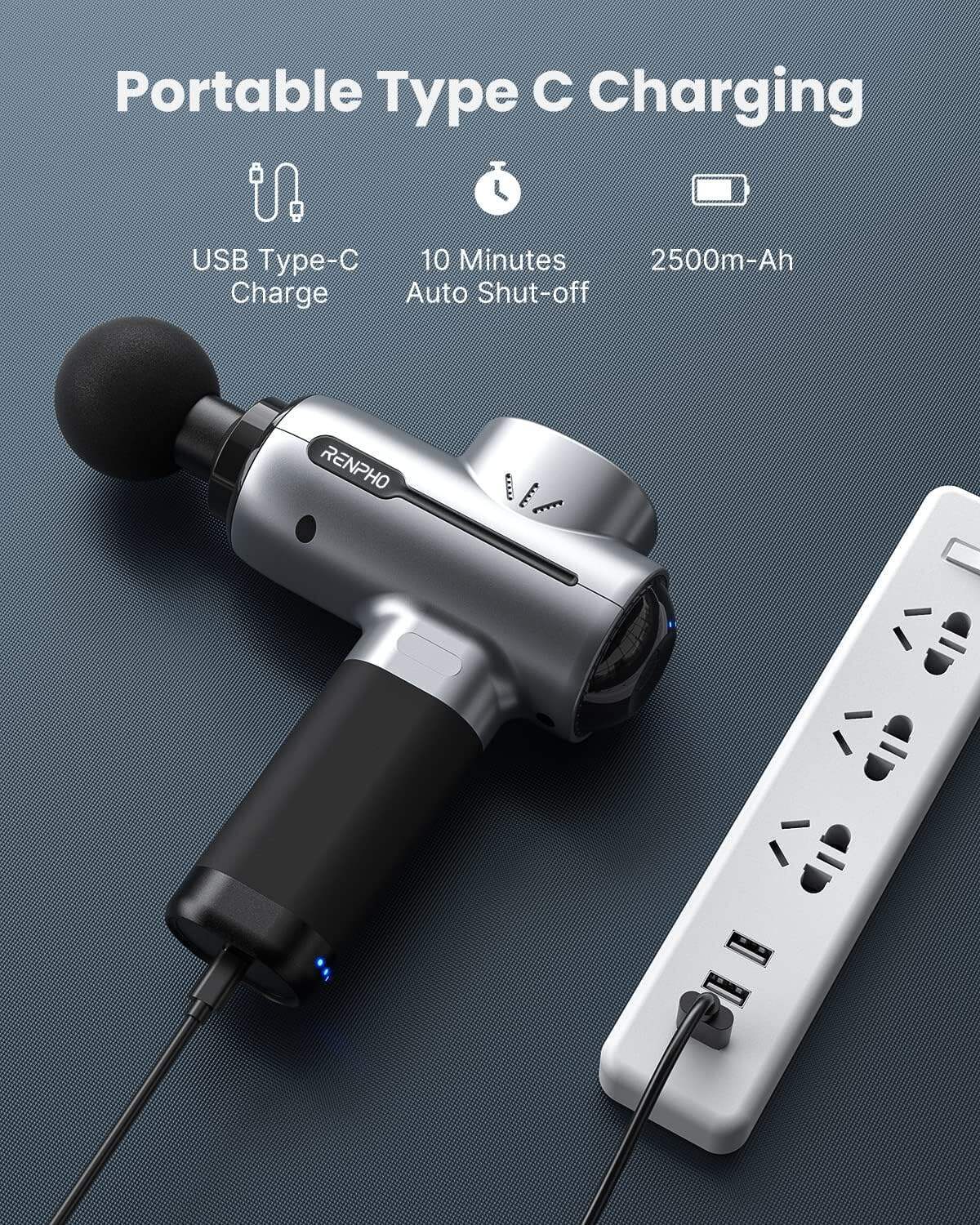 - Convenient USB-Type c(Not support c-c) Charging massage gun deep tissue - No worry about charging when you travel with it in different countries; this deep tissue percussion muscle massager gun can be charged by USB(type-c) with 5v/2a adapter(Not Include), and can be charged by power bank too