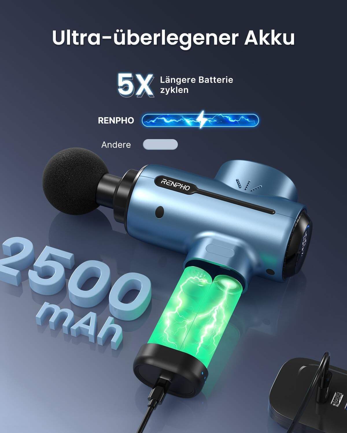 - Long Battery Life & 10min Auto-off Protection: The muscle massage gun is equipped with a rechargeable 2500m-a-h high-quality battery, and it can power a weeks' worth of workouts after fully charging; 10-minute auto-off feature for safety consideration(Tip: Use time may differ depending on the speed selected)