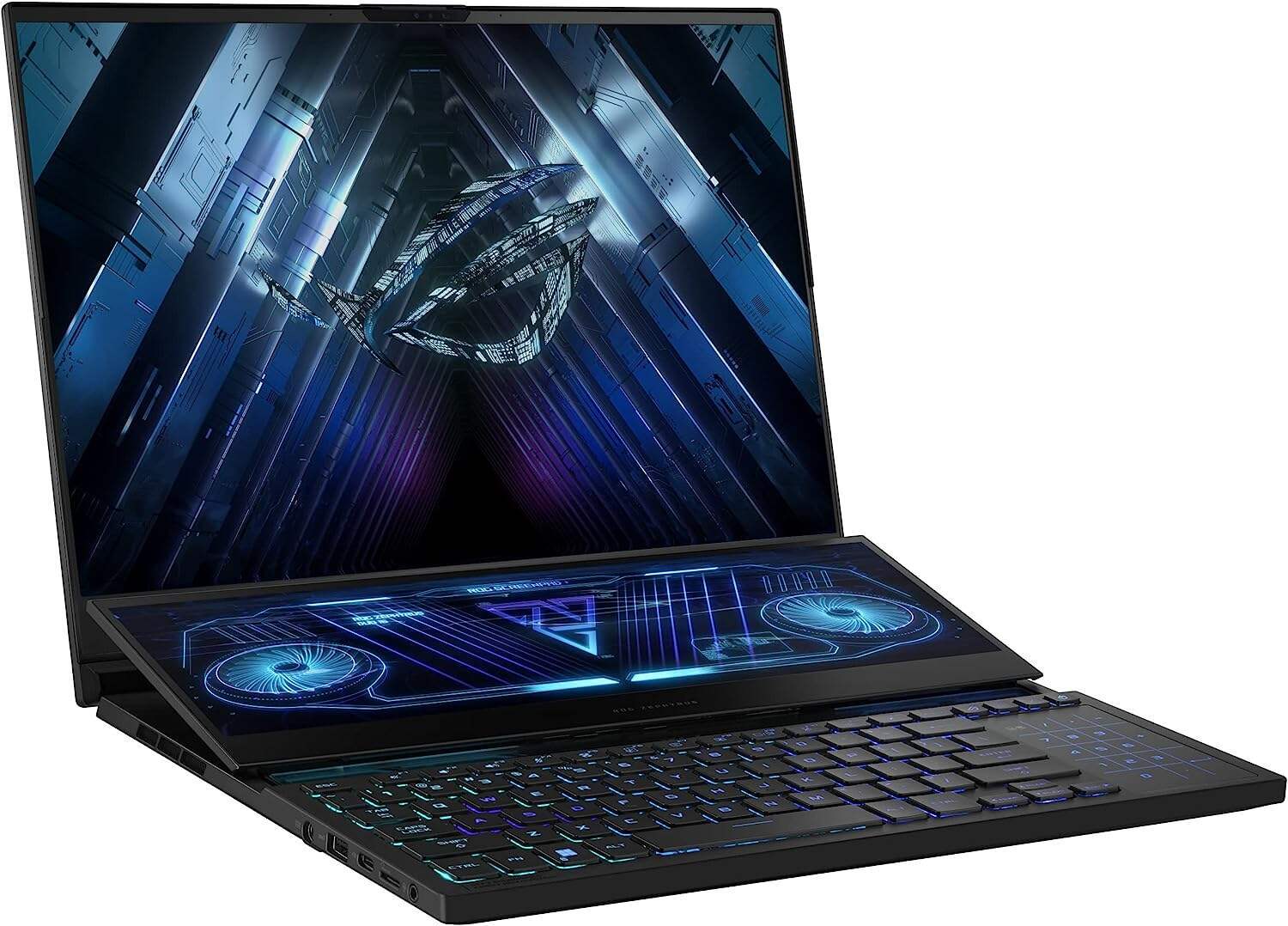 - ROG SCREENPAD PLUS – Do more with a second 14.1” integrated touchscreen that rises automatically as you lift off the lid. The opening doubles as an air intake improving airflow by up to 30% for even better cooling.