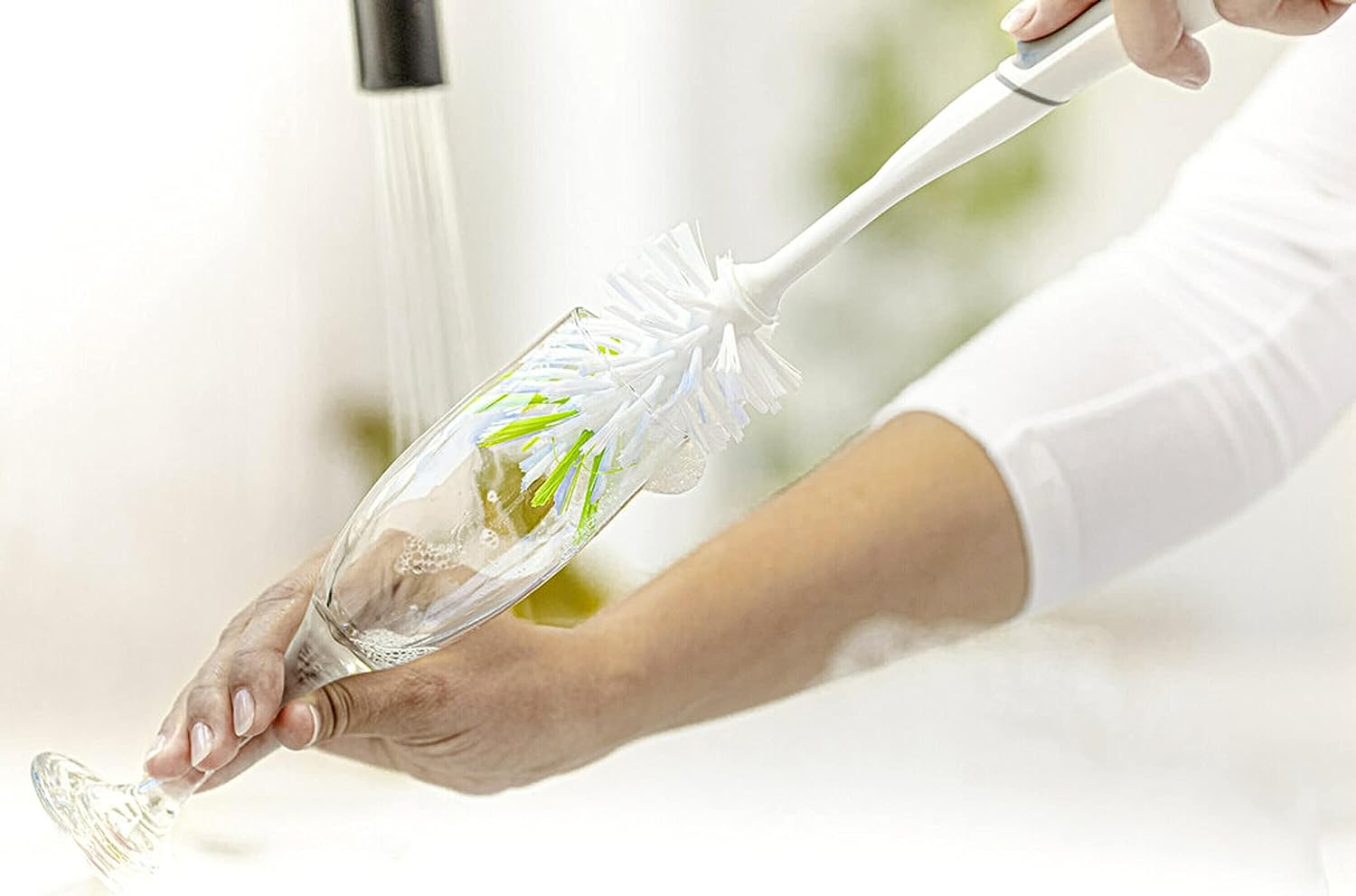 - Valve prevents dish soap from leaking, no matter how the dishwand is stored