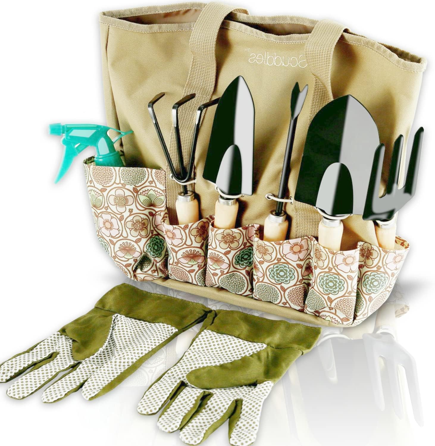 - NEW AND IMPROVED GARDEN TOOLS SET: The Scuddles garden tool storage Kit is improved with anti rust stainless steel Heavy Duty Garden Planting Tools with Construction Grade Gloves and can also be hand washed and machine Low Dry