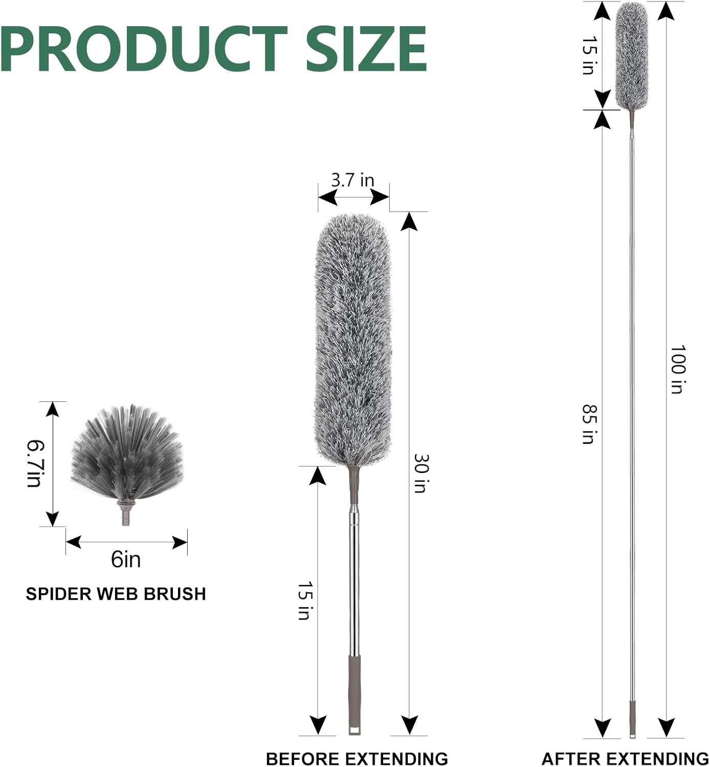 • EXTENDABLE DUSTER: Our telescoping duster pole is made with stainless steel, and can be extended from 30" to 100". You can extend the high duster to the length you need and do the cleaning jobs of different heights.
