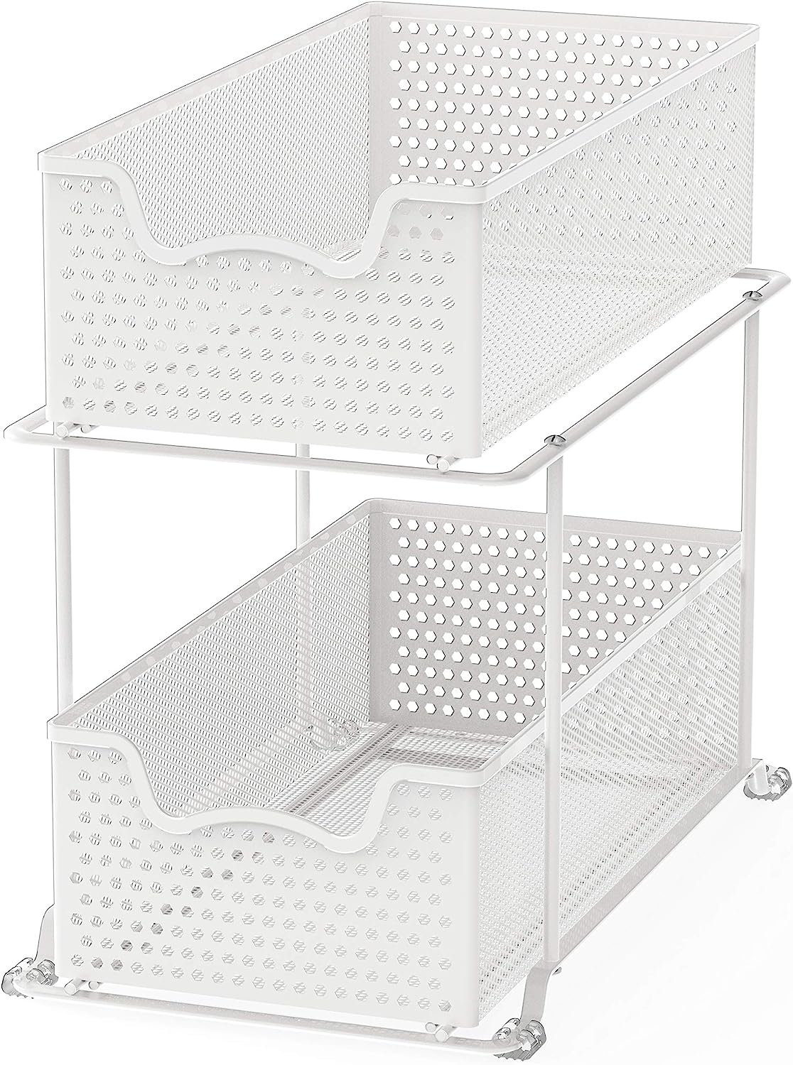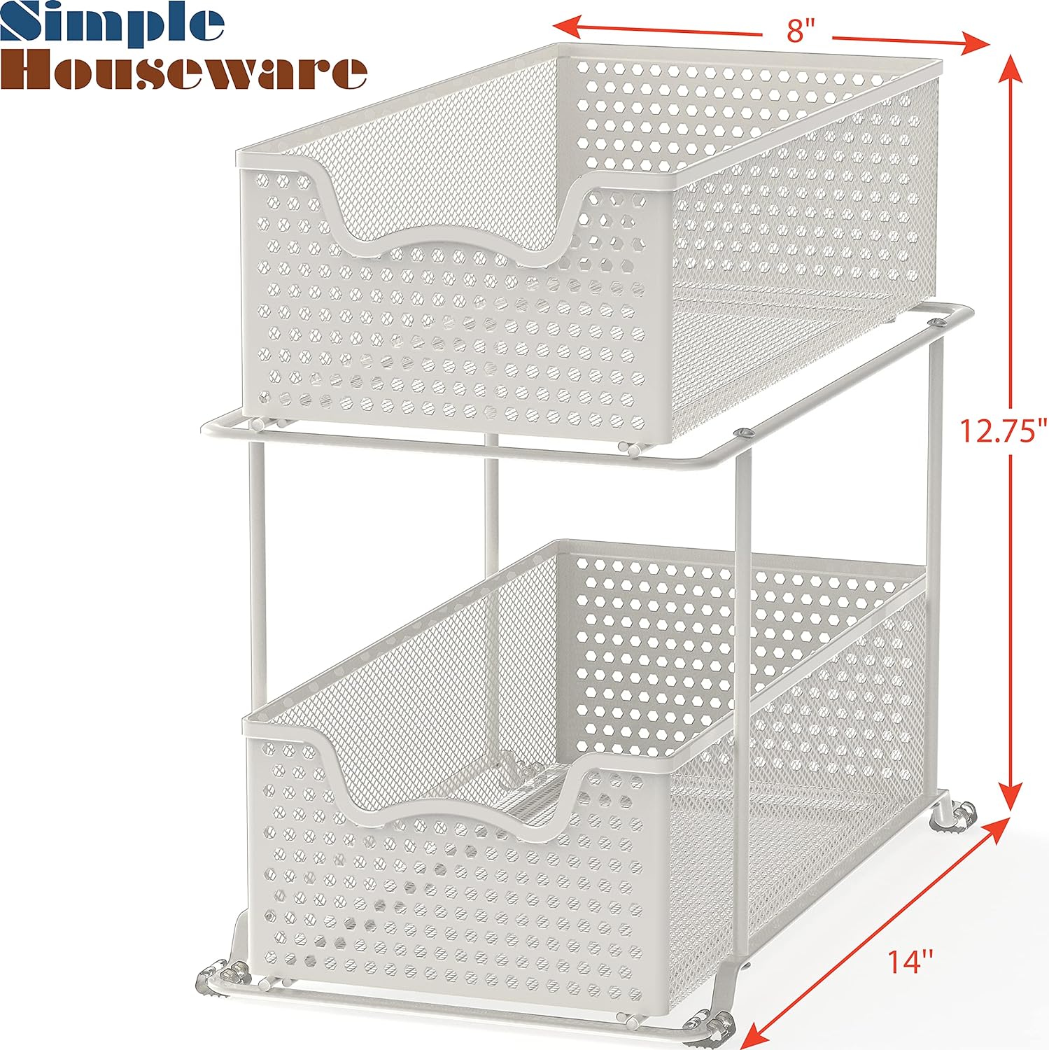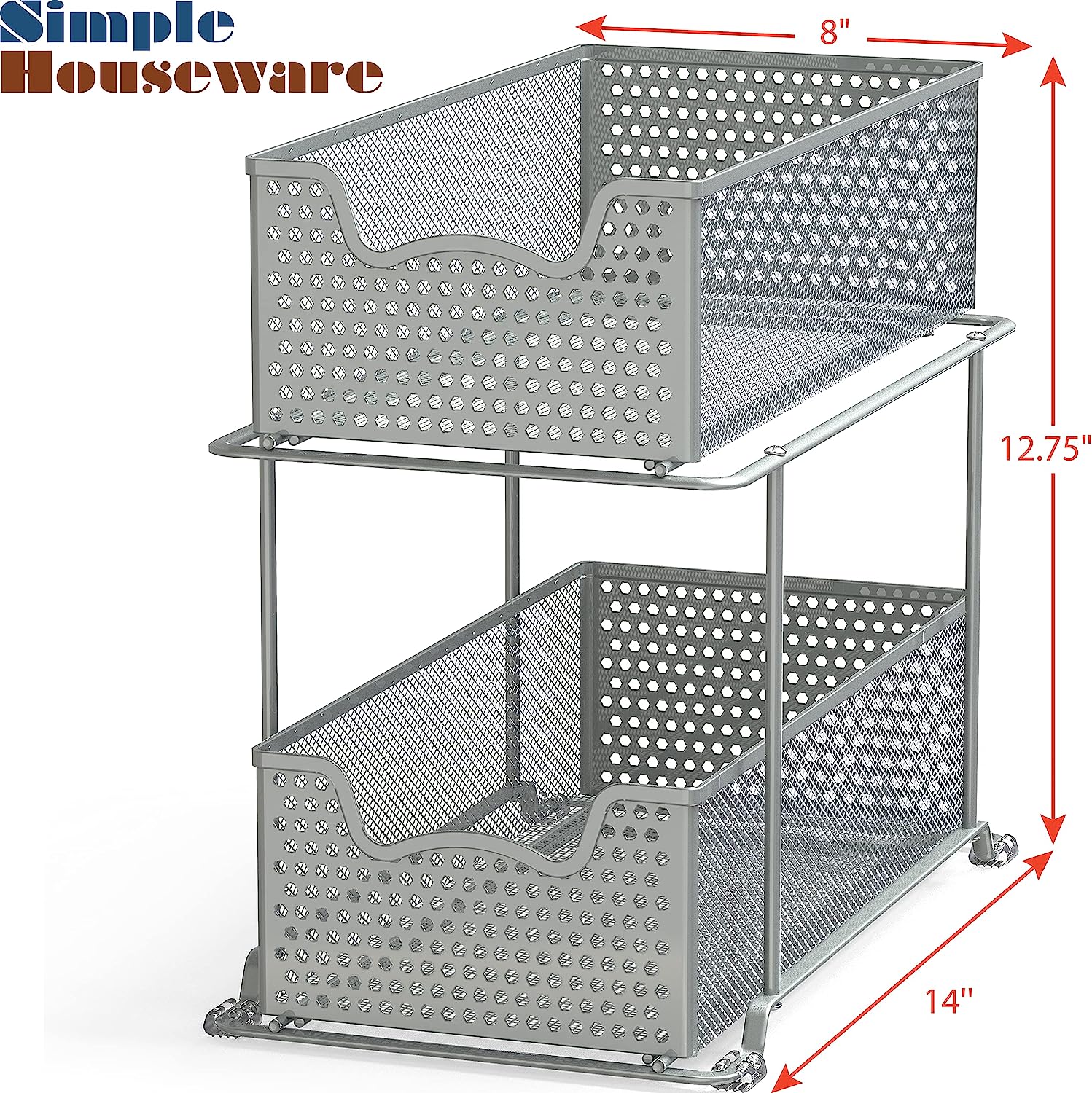 Simple Houseware 2 Tier Sliding Cabinet Basket Organizer Drawer, Silver
