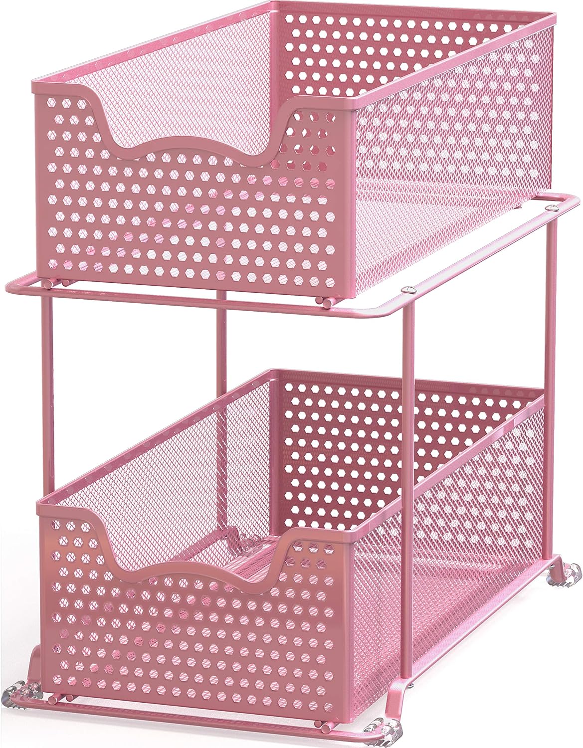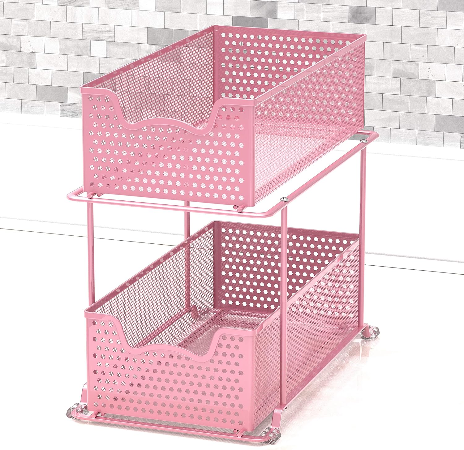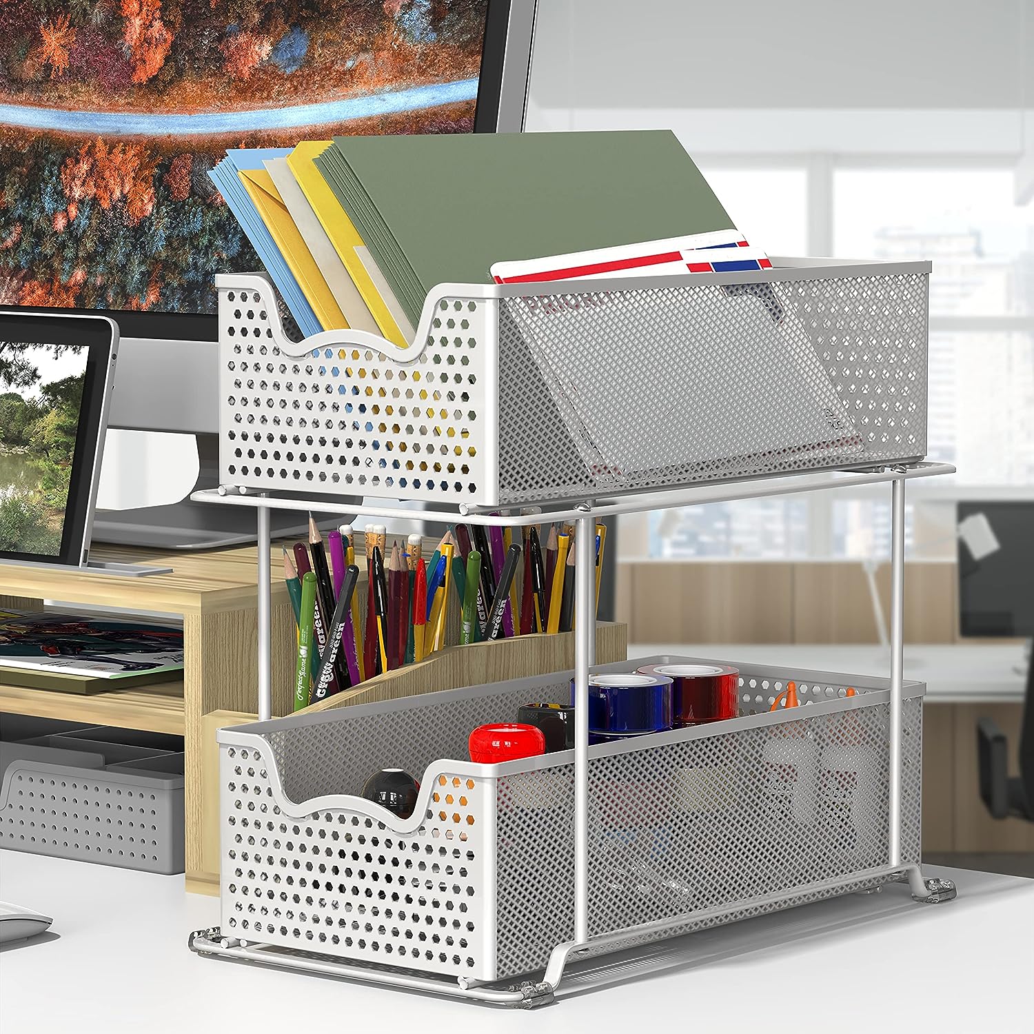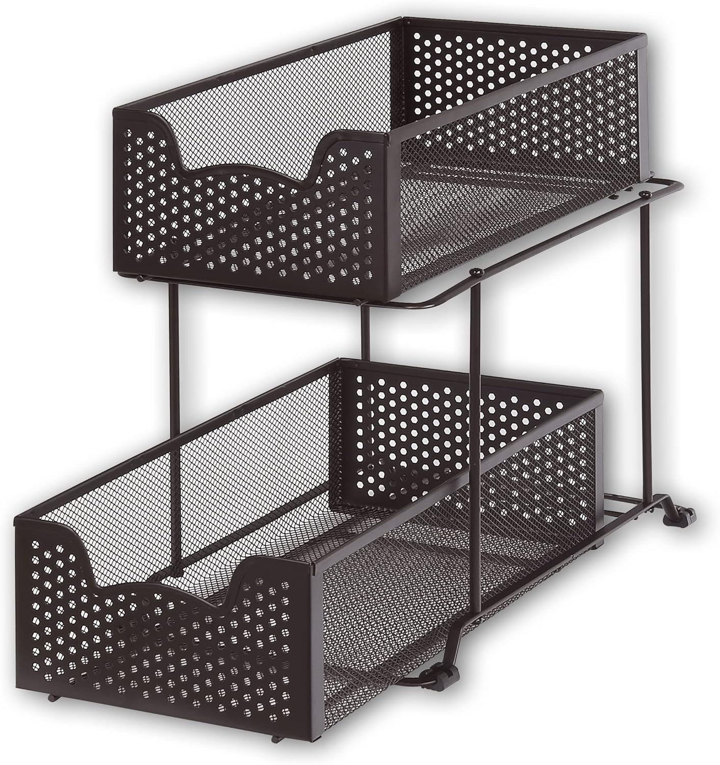 Simple Houseware 2 Tier Sliding Cabinet Basket Organizer Drawer, Silver