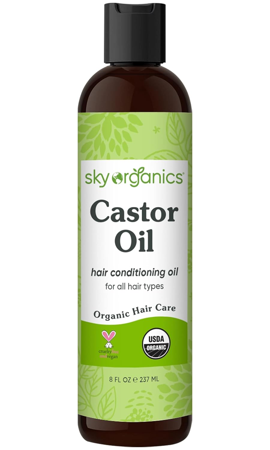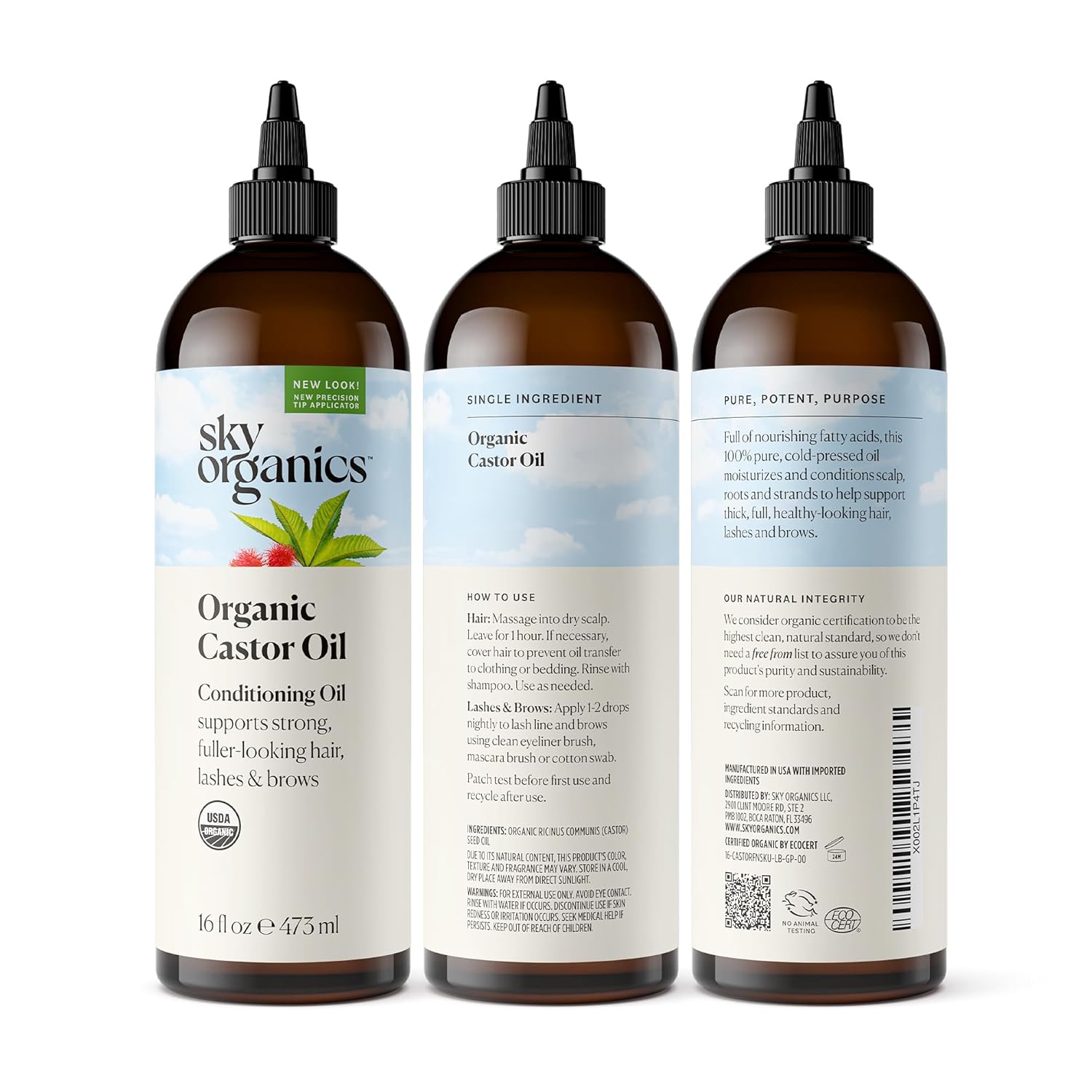 • Sky Organics Organic Castor Oil, 100% Pure, Hexane Free, Cold-Pressed to Support Stronger, Fuller-Looking Hair, Eyelashes & Eyebrows,Good for Castor Packs, Navel Oiling, Carrier Oil Use, 16 fl oz