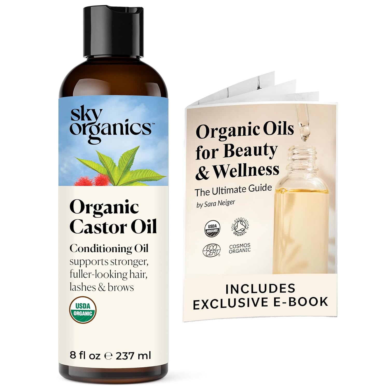 Sky Organics Organic Castor Oil, 100% Pure, Hexane Free, Cold-Pressed to Support Stronger, Fuller-Looking Hair, Eyelashes & Eyebrows,Good for Castor Packs, Navel Oiling, Carrier Oil Use, 16 fl oz