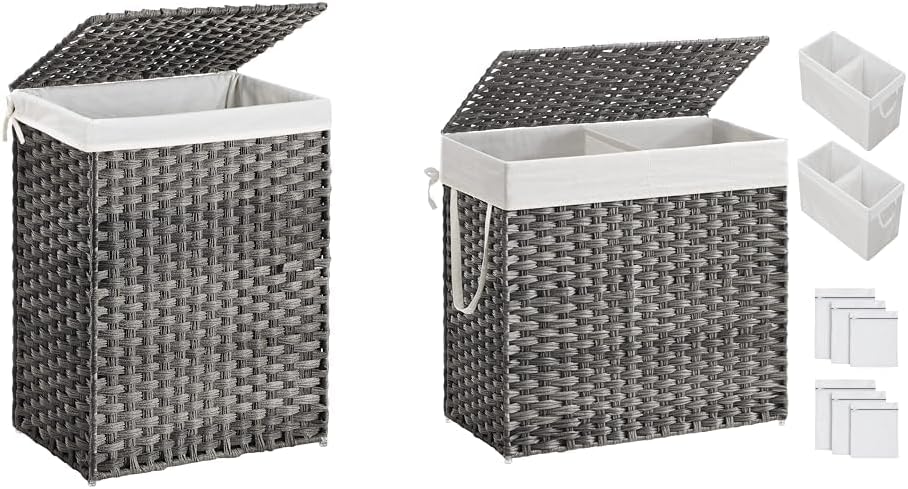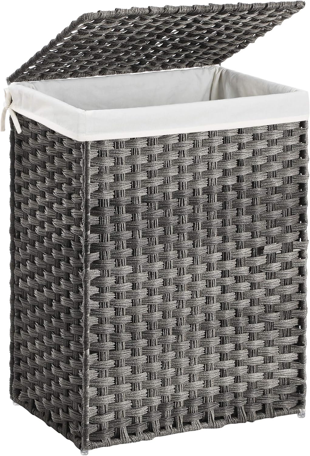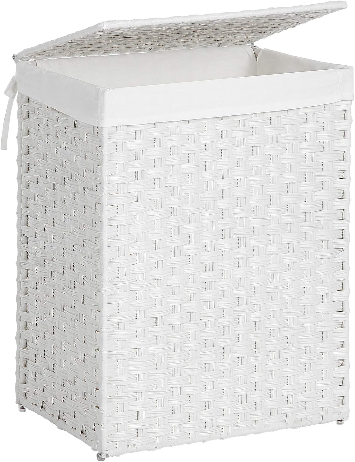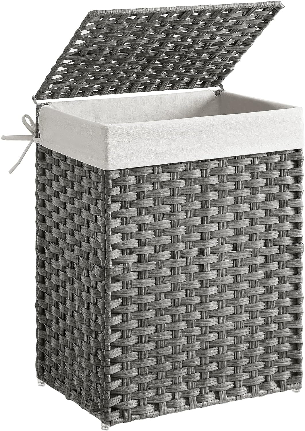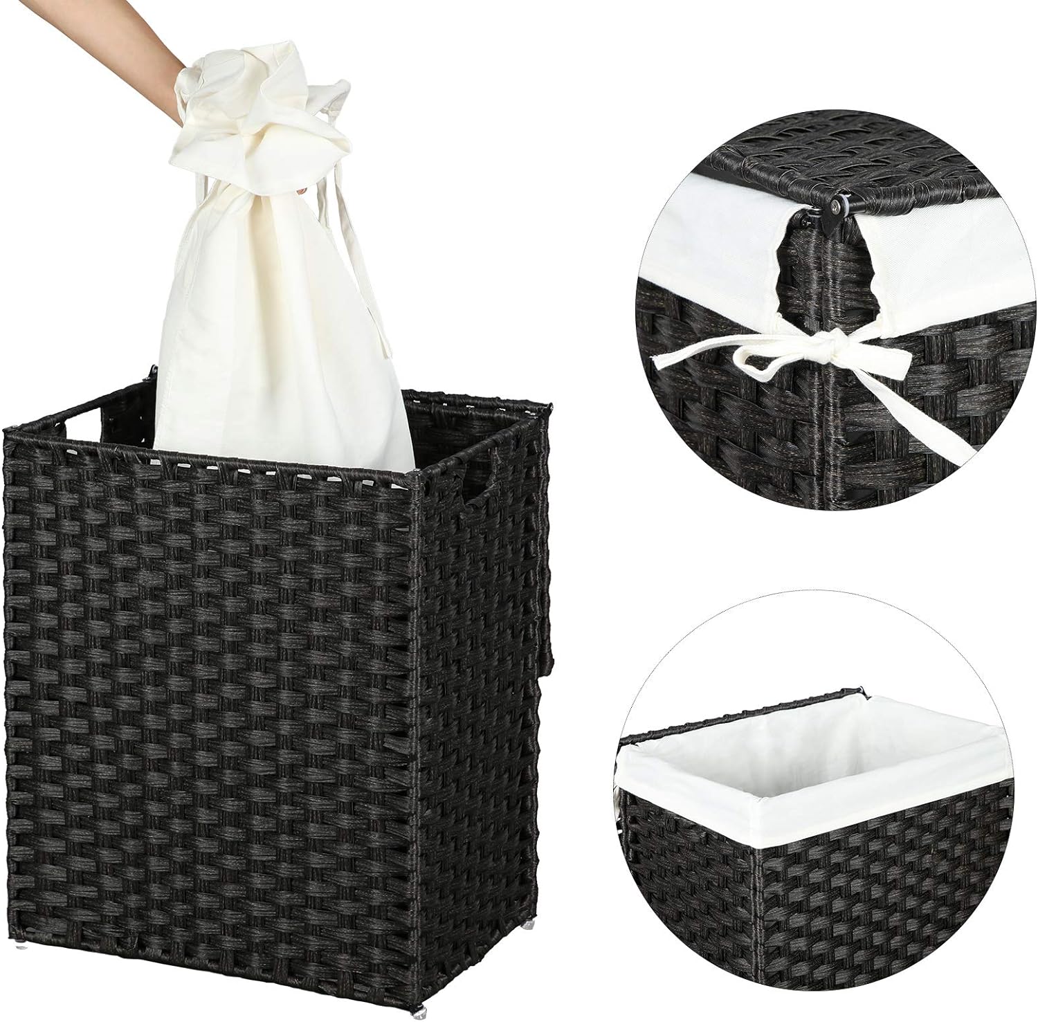 • SONGMICS Handwoven Laundry Hamper, 23.8 Gal (90L) Synthetic Rattan Clothes Laundry Basket with Lid and Handles, Foldable, Removable Liner Bag, Natural ULCB51NL