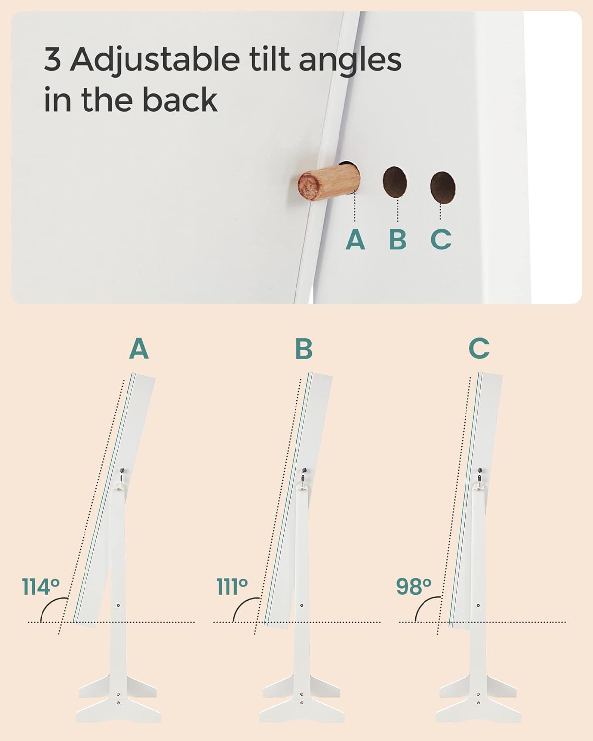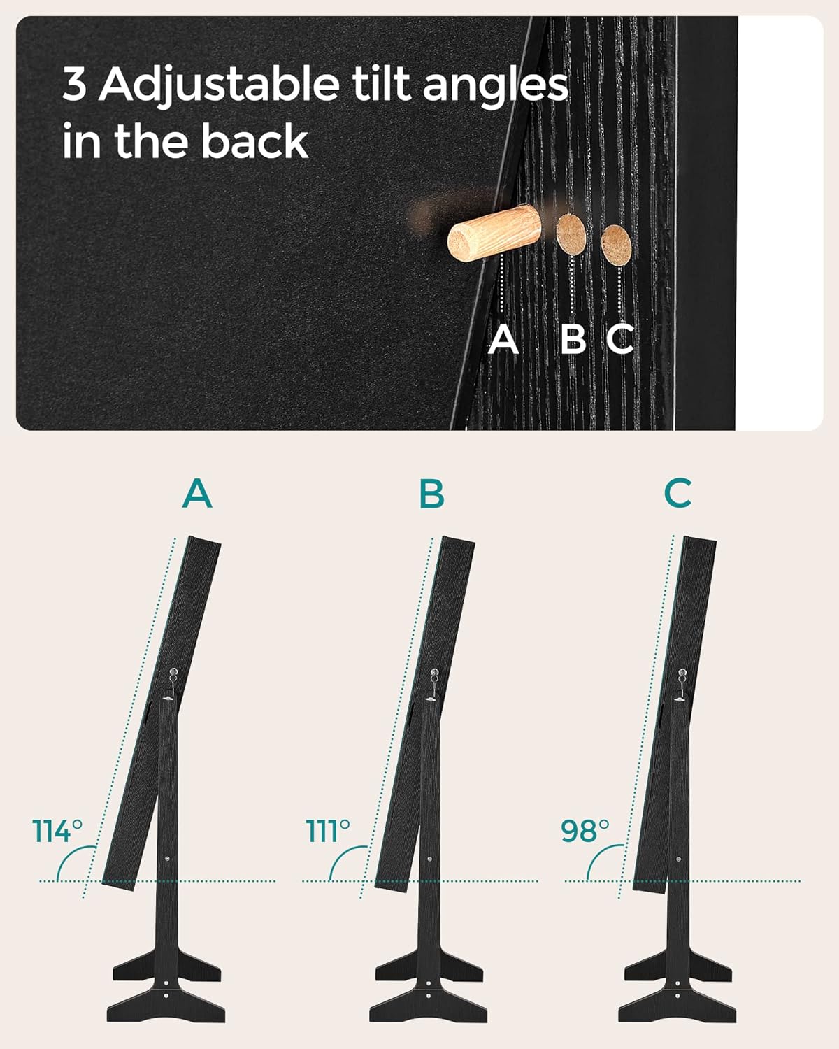 - See Beauty in the Mirror: With the full-length mirror, you’ll be able to have a head-to-toe view of your outfit at one glance; plus, the glass mirror offers better performance while making your room brighter and bigger-looking