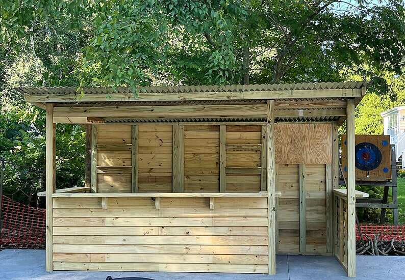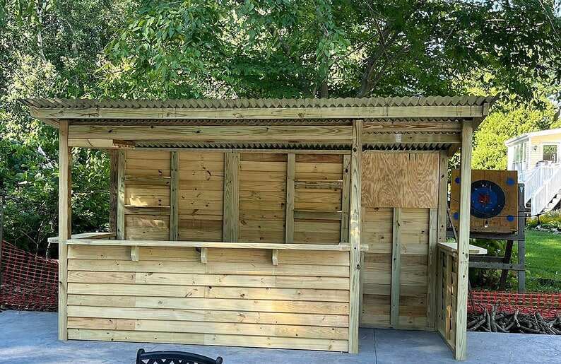 Bars are delivered finished in raw yellow pine, pressure treated lumber. Customers can paint or stain their bars as desired.