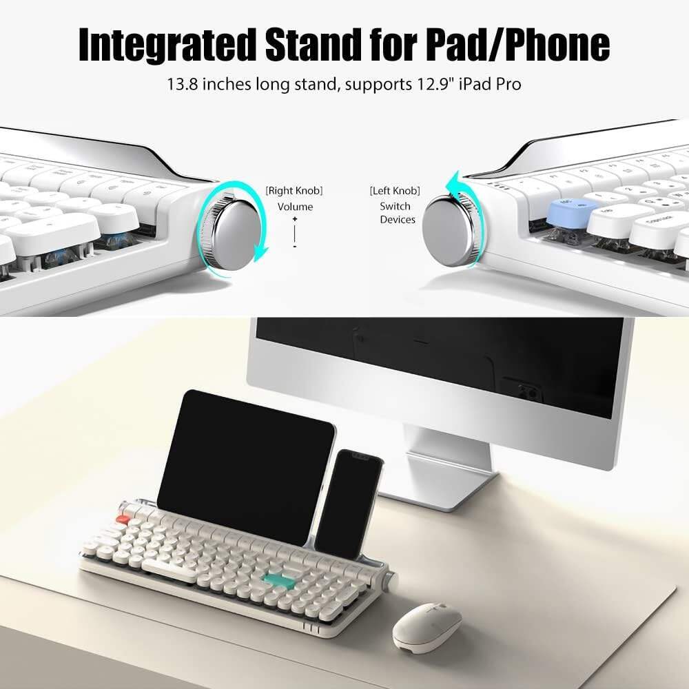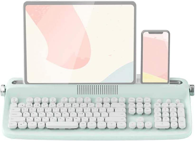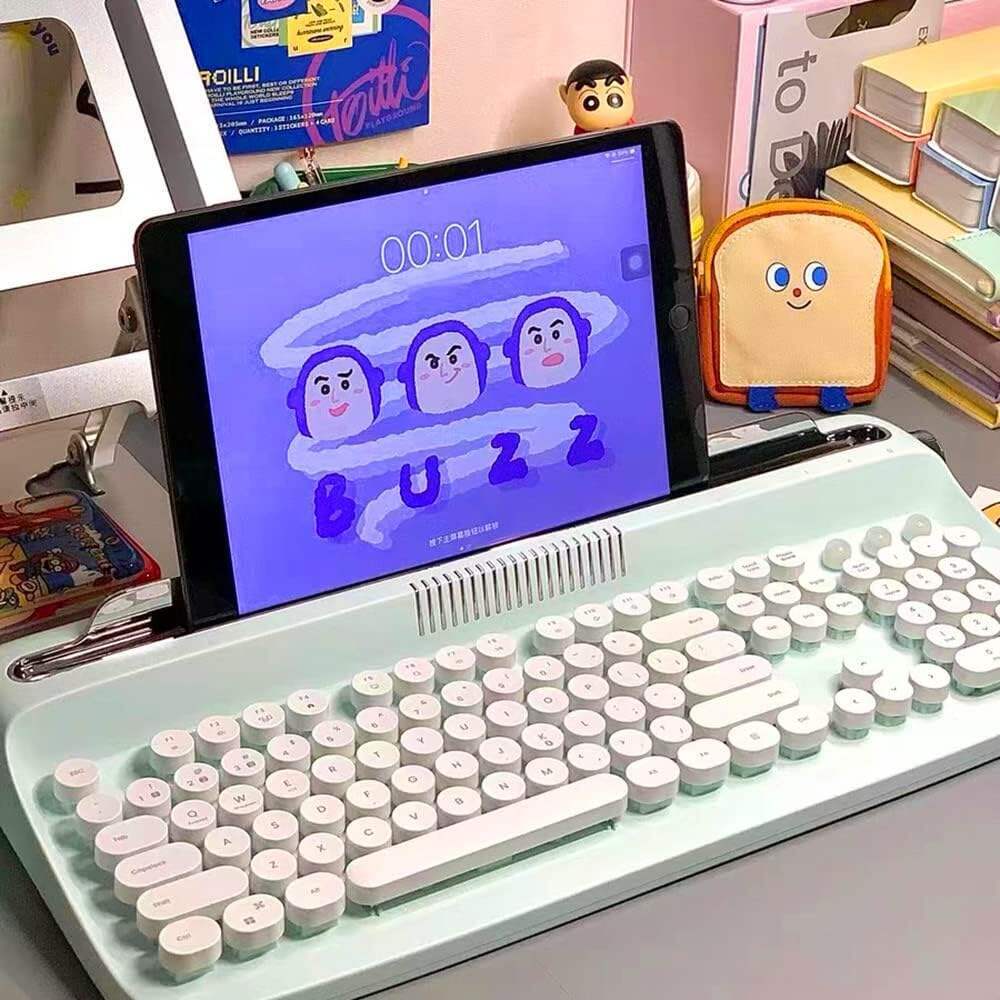 - [Retro Aesthetic Typewriter Style Keyboard] - The typewriter keyboard is a fusion of retro style and modern design. Cute white round keycaps and advanced wireless technology make typing more comfortable and enjoyable.