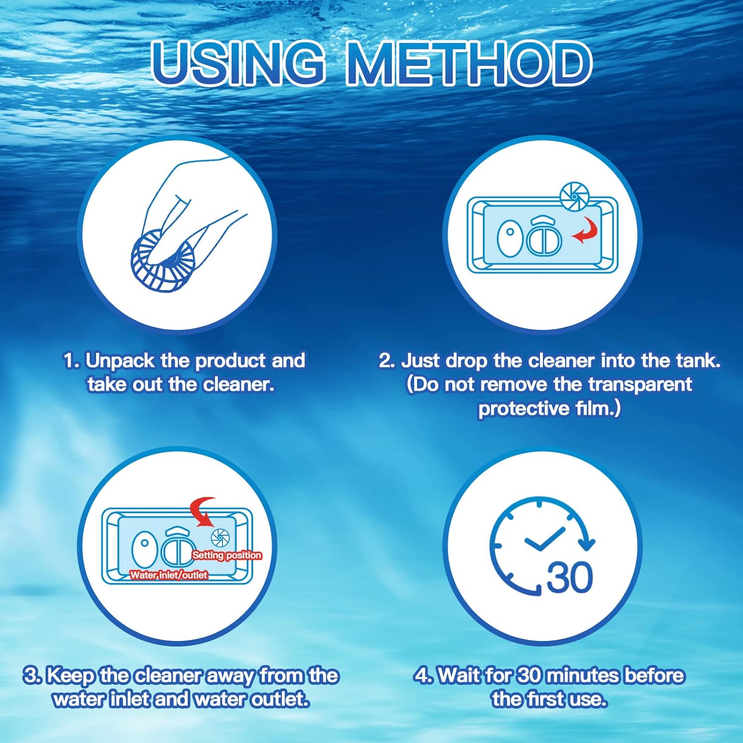 - POINTS FOR ATTENTION - When the blue toilet bowl tablet dissolves completely, the blue will fade, a new toilet tank cleaner should be put into the tank. This product cannot completely replace the toilet brush. It is mainly to help maintain a clean toilet tank and reduce the dirt accumulation on the tank. Please clean the toilet tank with a toilet brush before the first-time use, so as to make a better use of this product.
