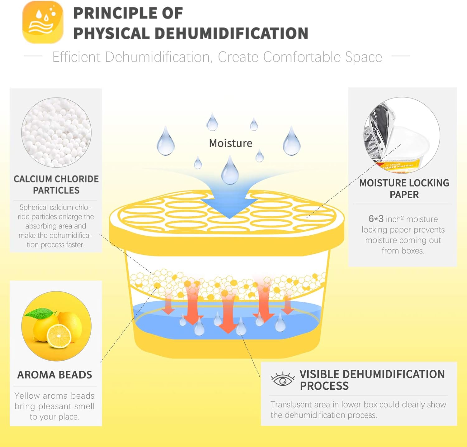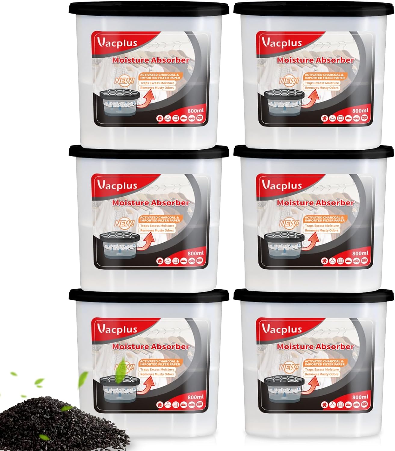 - Efficient Dehumidification: Traps excess moisture quickly. Vacplus moisture absorbers use spherical calcium chloride to enlarge the absorbing area. The large collecting capacity of this moisture remover keeps a long time dry.