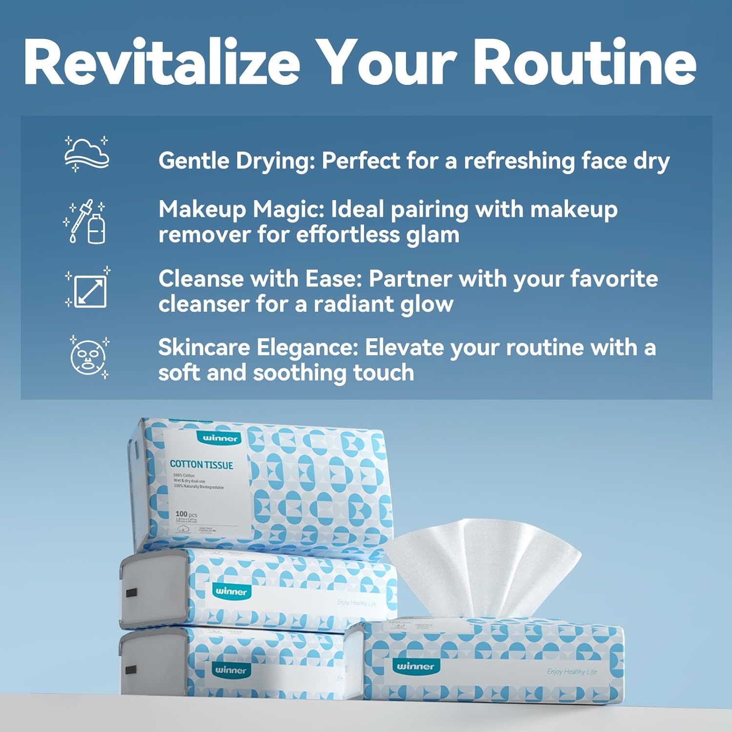 - Versatile Cotton Tissue: Winner multi-purpose cotton tissue, with a cloth-like texture, serves as a facial tissue, baby dry wipe, and disposable hand towel. Offering a soft and gentle option for both baby and adult sensitive skin, it proves indispensable in the personal care routines, makeup removal, and incontinence care.