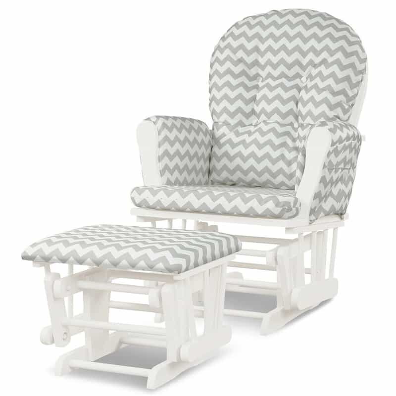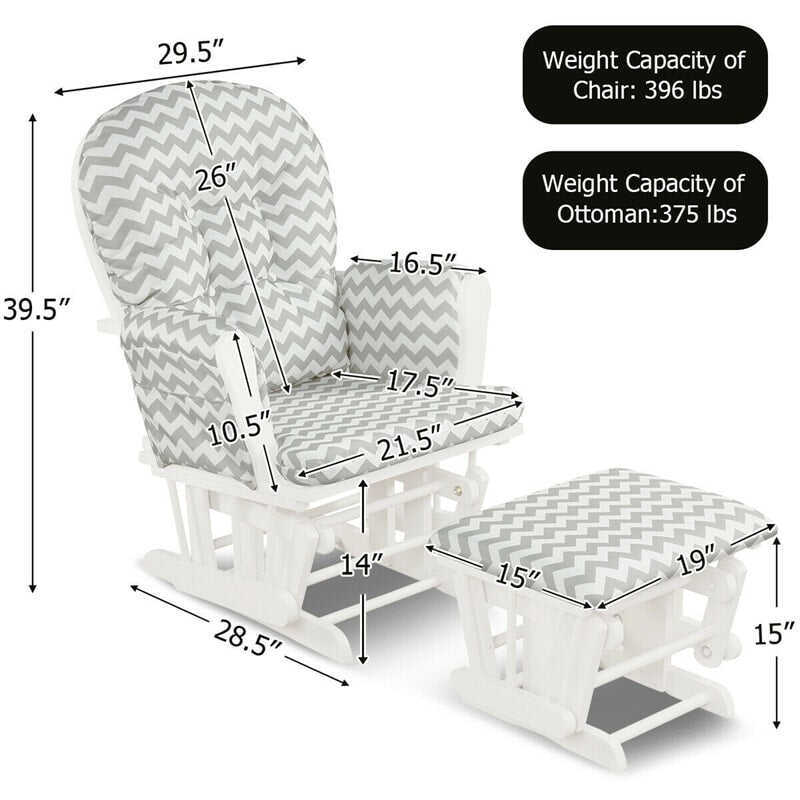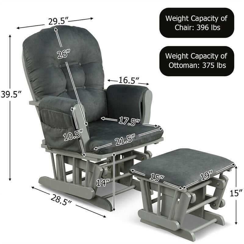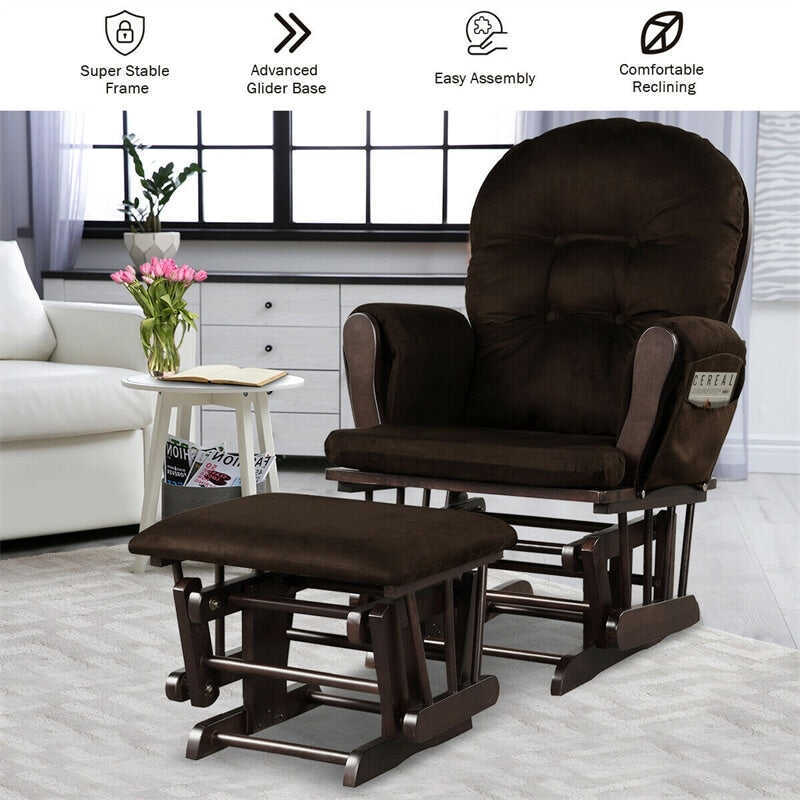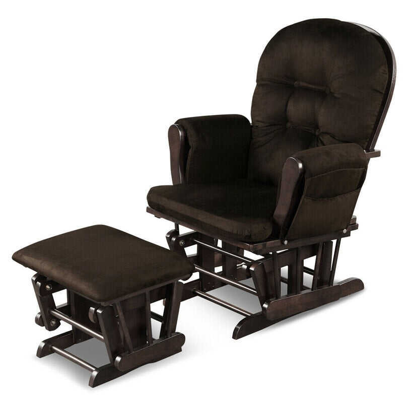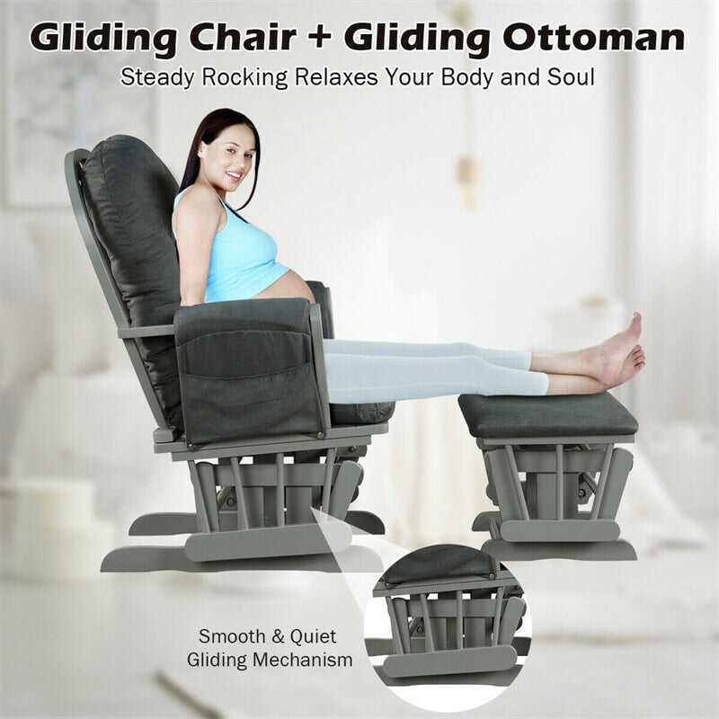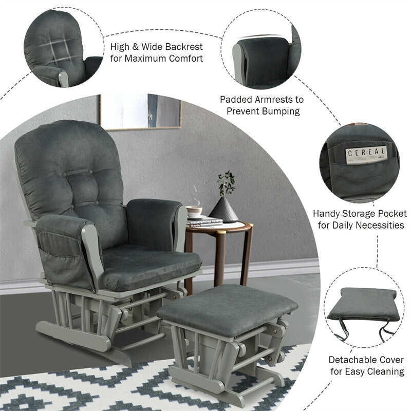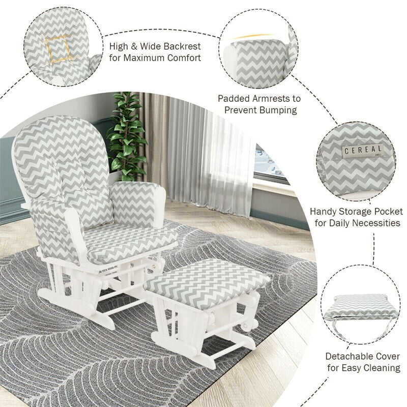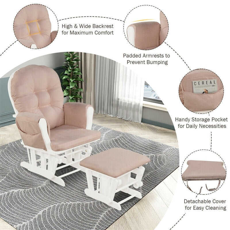 Wood Baby Glider Rocking Chair Nursery Chair with Gliding Ottoman & Storage Pocket