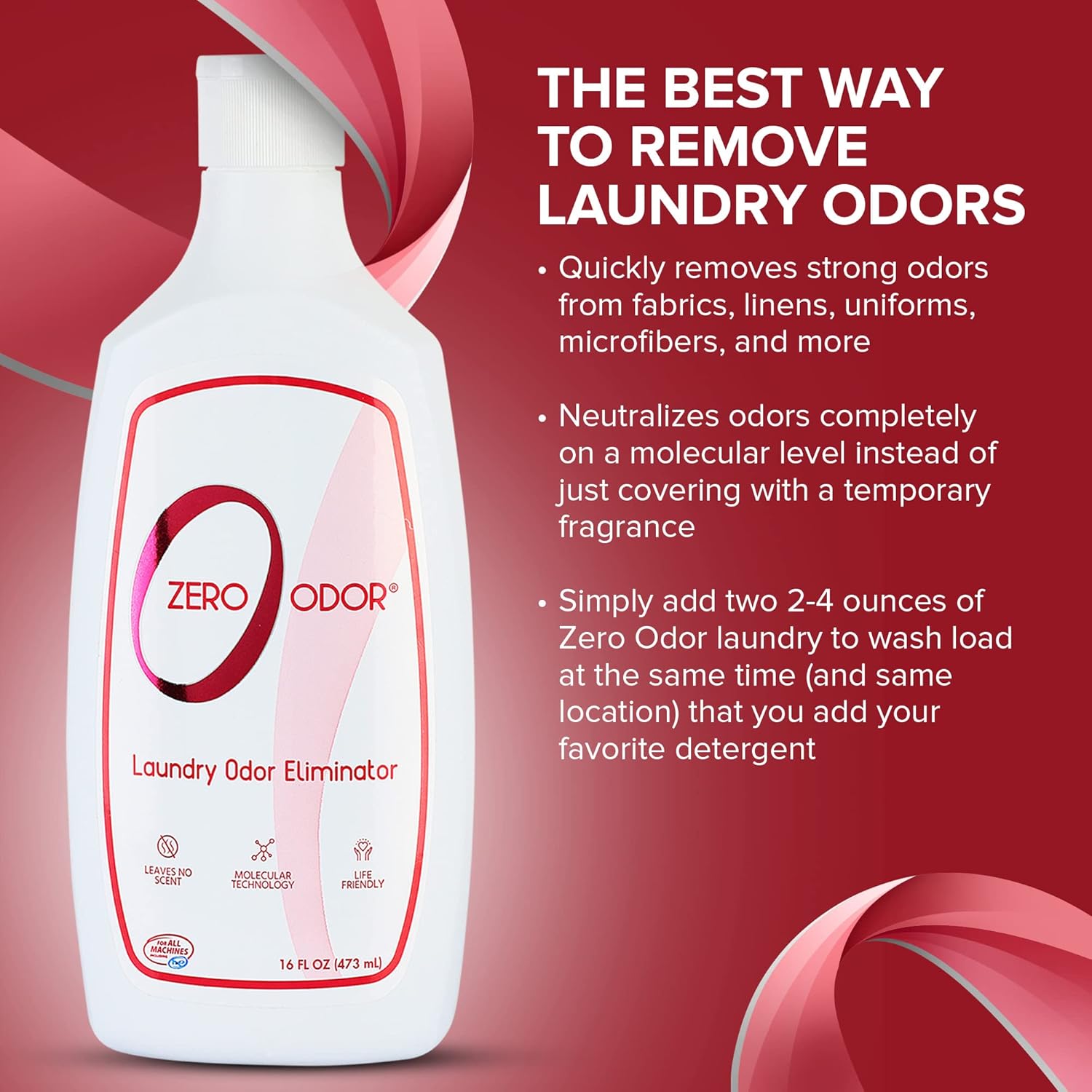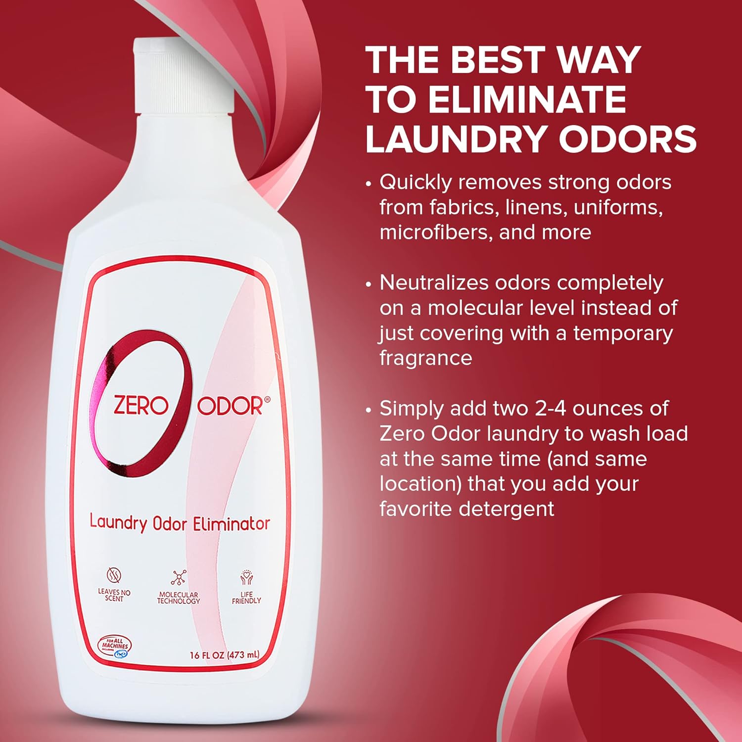 - How To Use: Add two (2) ounces of Zero Odor Laundry to wash load at the same time (and same location) that you add your favorite detergent.